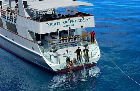 Monday: Boarding Spirit of Freedom at 11:15am at Trinity Wharf in Cairns (complimentary transfers from Cairns city hotels are available) for a 12 noon departure. Lunch will be served on board while we cruise to the Great Barrier Reef to the north of Cairns, for an afternoon orientation dive and a twilight or night dive.