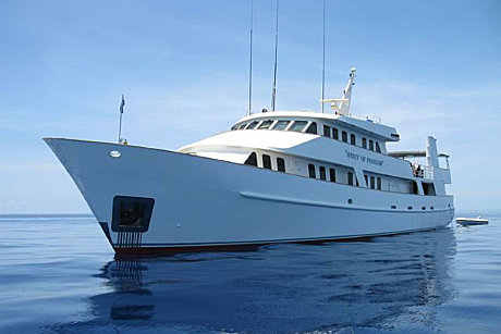 Spirit of Freedom is one of Australia’s most comfortable, stylish and sleek live aboard diving vessels offering the best dive cruising to the Great Barrier Reef and remote Coral Sea reefs out of Cairns in tropical north Queensland. On board you will be treated to first class chef prepared meals and complimentary wine with your evening meal after an amazing day of diving. There are three decks on Spirit of Freedom with a separate lounge, dining and under cover top deck providing plenty of space for up to 26 guests. The 11 generous air-conditioned cabins all containing private bathrooms make for a very comfortable live aboard diving adventure to the Great Barrier Reef.