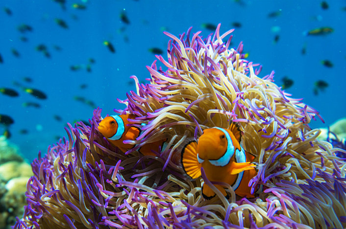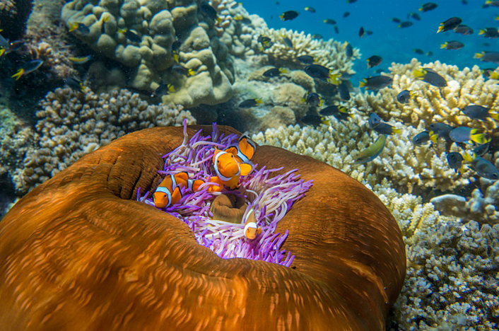 Enjoy a guided snorkelling tour straight from the pristine white sandy beach, where an expert marine naturalist will guide you over colourful corals and tropical fish, explaining this unique and wonderful ecosystem. Alternatively, stay dry and choose a coral viewing from the semi-submersible or glass bottom boat (optional extra cost). Other optional activities include an adventure snorkel safari, scuba diving and a guided Island Discovery walk that takes in the coral cay forest, sandy beaches and the reef's nursery. Clear-bottomed kayaks, stand up paddle boards and Sea-Doo underwater scooters are available for hire. Included in your tour is a tropical buffet lunch served on the island with a choice of fresh local prawns, salads, chicken, ham, cheese, bread and an abundance of fresh tropical fruit.