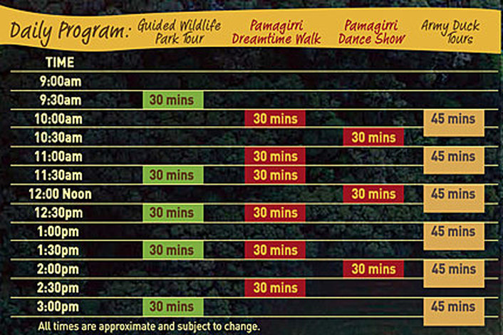 Dreamtime Walk Times: 10am, 11am, 11.30am, 12.30pm, 1.30pm, 2.30pm