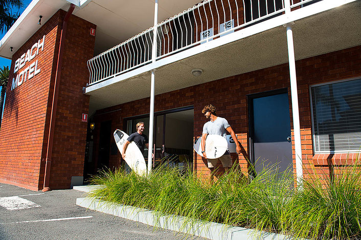 We call our accommodation the ‘Beach Motel’ – it is aptly named and positioned as it is right across the road from one of the best surfing beaches in the area, Thirroul Beach. The rooms are beautifully renovated for our Surf Camps (this ain’t no hostel!!) have a maximum of three people staying within, have private bathrooms and we have even installed kitchenettes and a fridge so you can chill your beer! The rooms are all serviced twice weekly during your stay with bedding and new towels as we want your stay to be one to remember. There is a common room with pool table, TV (loads of surf videos) and a general place to hang, and being so close to town you will always have somewhere to explore.