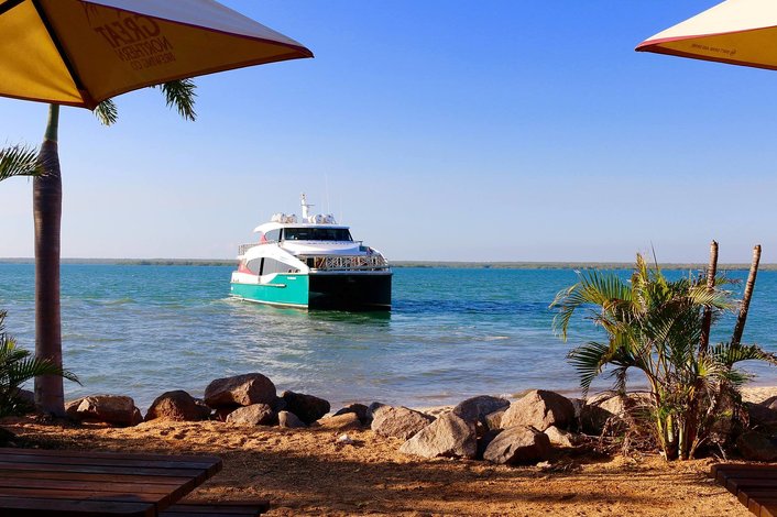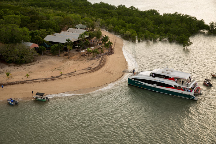 Sit back and relax on a full day cruise to the remote Crab Claw Island Resort. Departing Cullen Bay at 10:30am, enjoy a leisurely two hour cruise into neighbouring Bynoe Harbour with light commentary along the way. A delicious seafood buffet lunch is served upon arrival at Crab Claw Island Resort. Grab a drink and enjoy the beautiful Bynoe Harbour views from the open-air resort restaurant deck. You have a few hours free time to relax and enjoy the resort; bring your bathers for a swim in one of the two pools, hire a boat or bring a fishing rod and throw in a line before we make the two hour cruise back to Darwin.