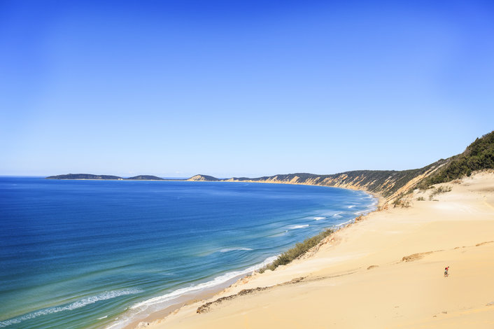 Experience the thrill of the Great Beach Drive taking in the stunning views & passing the famous Rainbow Beach coloured sand cliffs.