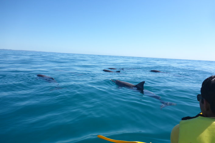 This trip is suitable for ages 7 years up and is a must for anyone looking for a lifetime experience with the wild! There is some 400+ dolphins living in the area and chances to see dolphins on kayak tour are generally high (90%) with likely chances to also see turtles, whales (June- November), rays, sea birds and soldier crabs in their thousands. If your a wild nature lover this is the tour for you.
