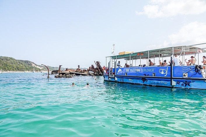 - Full day cruise to Moreton Island, Marine Discovery Cruise including dolphin spotting, tropical buffet lunch, morning tea, snorkelling tour with equipment, free time on the beach.